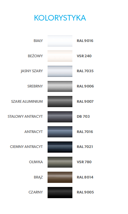 - wybór prowadnic, ekstrudowane aluminium lub linka ze stali nierdzewnej